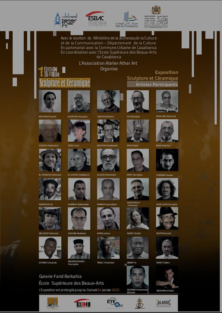 Dans le cadre de ses activité culturelles et artistiques, l’Association Atelier Athar Art organise la première édition du Forum de la Sculpture et de la Céramique en coordination avec l’École Supérieure des Beaux-Arts de Casablanca jusqu’ au 4 janvier 2025. A titre de reconnaissance, cette édition met à l’honneur le sculpteur et céramiste Hassan Slaoui, ainsi que Moussa Zakani, deux figures incontournables du paysage artistique marocain.