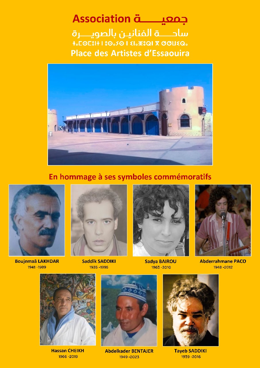 Il est dans ce cadre que, mûs par un désir sincère de préserver et de faire prospérer l’héritage de ce lieu hors du commun, tous les bénéficiaires des galeries de la Place des Artistes ont pris la décision unanime, et avec une détermination sans faille, de fonder l’Association « Place des Artistes d’Essaouira ». Cette initiative ambitieuse vise à renforcer le tissu associatif culturel et artistique local, tout en honorant la mémoire des grandes figures qui ont façonné l’identité de cet espace sacré. Des noms qui résonnent comme des symboles indélébiles, à l’instar de Boujemâa Lakhdar, Saddik Saddiki, Sadya Bairou, Tayeb Saddiki, Abdelkader Bentajer, Abderrahmane Paco et Hassan Cheikh. Ces artistes, figures tutélaires, ont imprégné ce lieu de leur génie, de leur passion et de leur vision. Leur héritage, bien plus qu’une simple trace dans le sable du temps, demeure une source d’inspiration vive pour les générations présentes et futures.