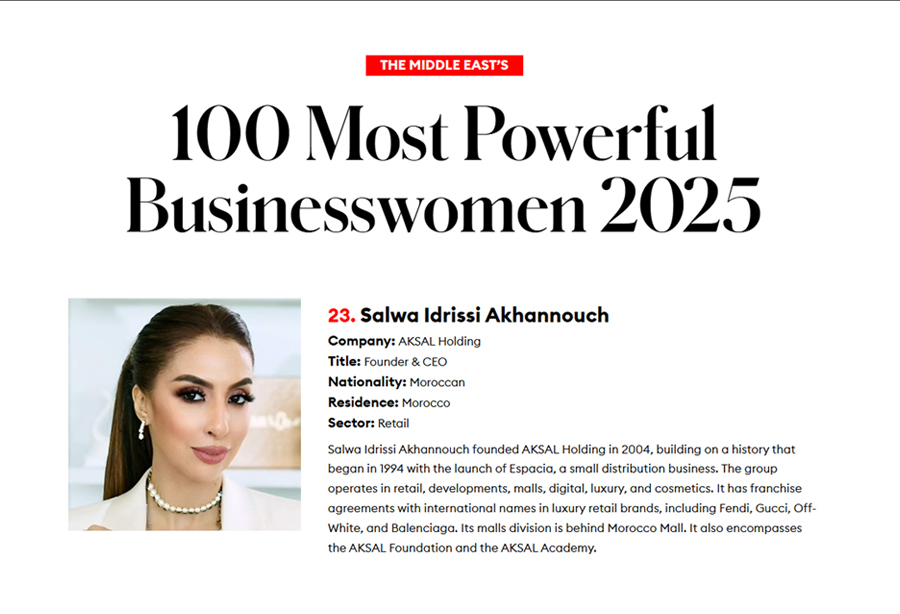 À la tête du groupe AKSAL, Salwa Idrissi Akhannouch a su repenser et réinventer plusieurs secteurs clés de l’économie, notamment le retail, le luxe, l’immobilier commercial et les cosmétiques. Grâce à sa vision avant-gardiste, elle a introduit des marques internationales emblématiques comme Zara, Fendi, Yan&One, et Bottega Veneta sur le marché marocain, contribuant ainsi à redéfinir le paysage commercial et à offrir une expérience client de classe mondiale. Ces initiatives ont non seulement apporté de nouvelles perspectives à l’industrie de la mode et du luxe, mais elles ont aussi permis de dynamiser l’économie locale, en créant des milliers d’emplois et en soutenant de nombreux entrepreneurs.