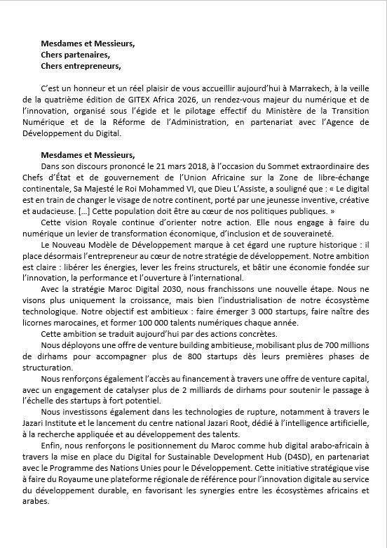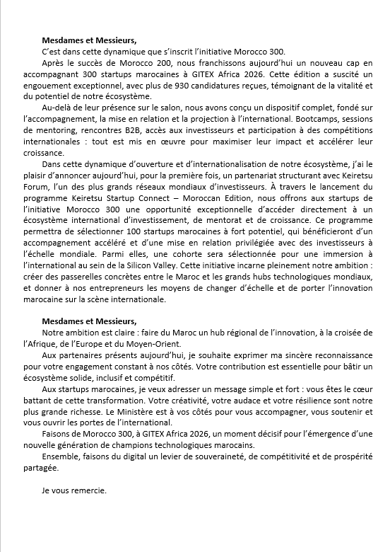 Ci-dessous le texte intégral du discours prononcé à Marrakech, soulignant les ambitions de la stratégie « Maroc Digital 2030 » et le lancement du partenariat avec Keiretsu Forum.